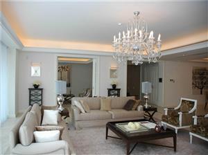 四室两厅两卫的设计,给予了一家五口三代人舒适宽敞的生活空间。镜面玻璃与水纹大理石的搭配,更衬以设计的错觉,让灯光在镜面的折射下,更加熠熠生辉,灯光所带来的暖一下子蔓延开来,满室的温暖。