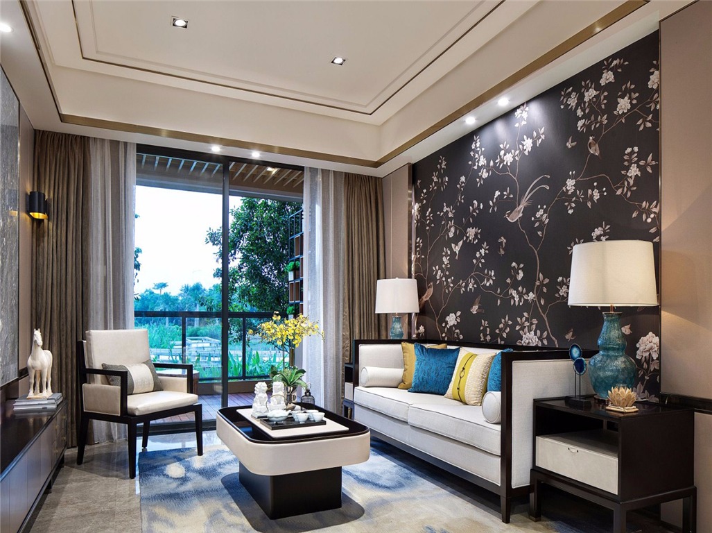 设计师在原本的户型上做了一些扩充改动,厨房采取了内移方案,厨房动静皆宜,而且有了敞开式的小吧台。在光线和动线现上更符合活动条件。米色基调配以孔雀蓝的色彩,加强视觉效果。简单的线条设计,精简中透着干练。